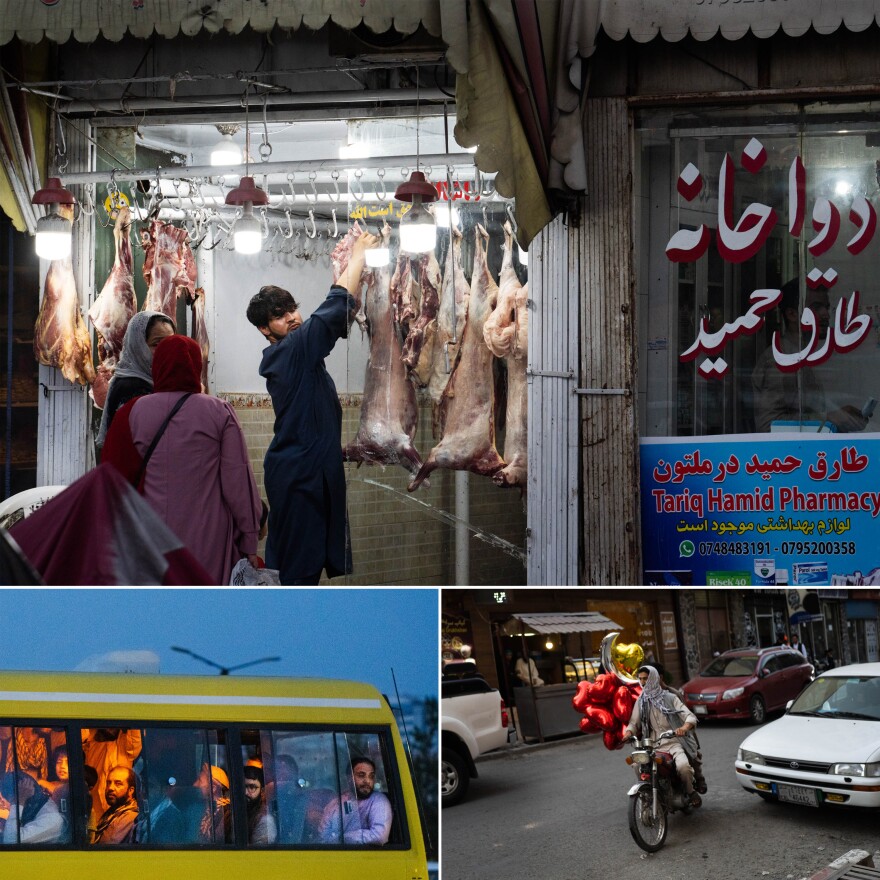 Their victory gave the radical religious movement supreme power over a country with a median age of 18 — which means most citizens weren't alive for the Taliban's violent years in power from 1996-2001. The young people on the left of this photo above had never seen such a change of power. On the right, 62-year-old carpet seller Ahmed Shah Kashefi says he's lived through many upheavals and it's always hard.