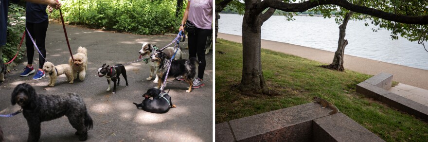 <em></em>Heavy rain in Washington, D.C., in October 2021 flooded parkland along the Potomac River (left). Less than a year later, it's back to normal (right).