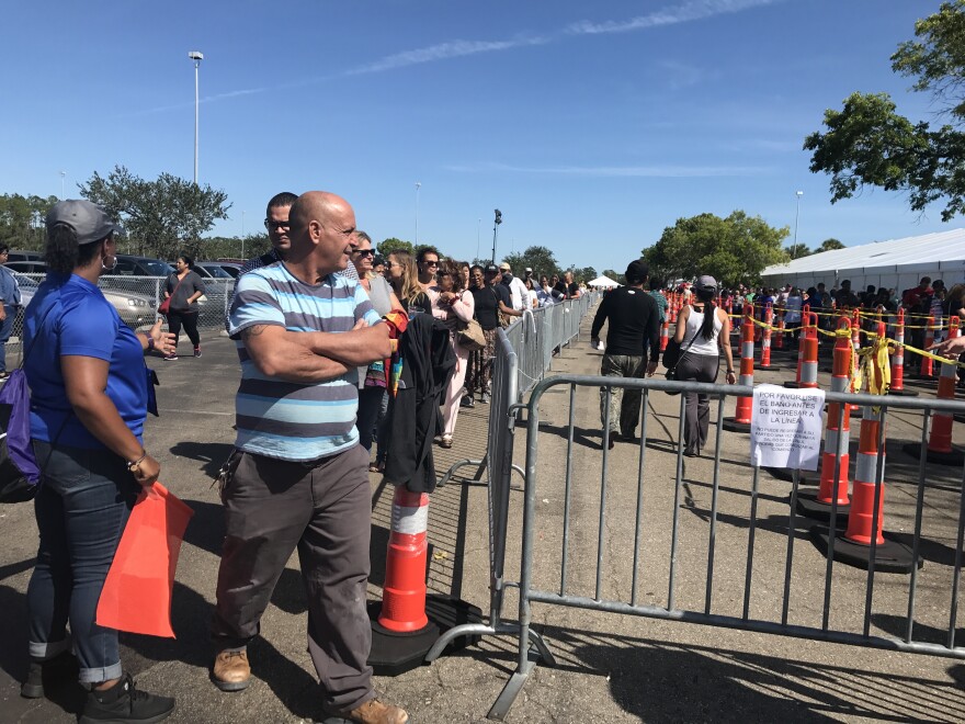 At the overflow parking area of Southwest Florida International Airport, thousands of people from Lee and Collier stand in line to apply for the Disaster Supplemental Nutrition Assistance Program, or DSNAP. It's for those who don't already get food assistance, but need help after Irma.
