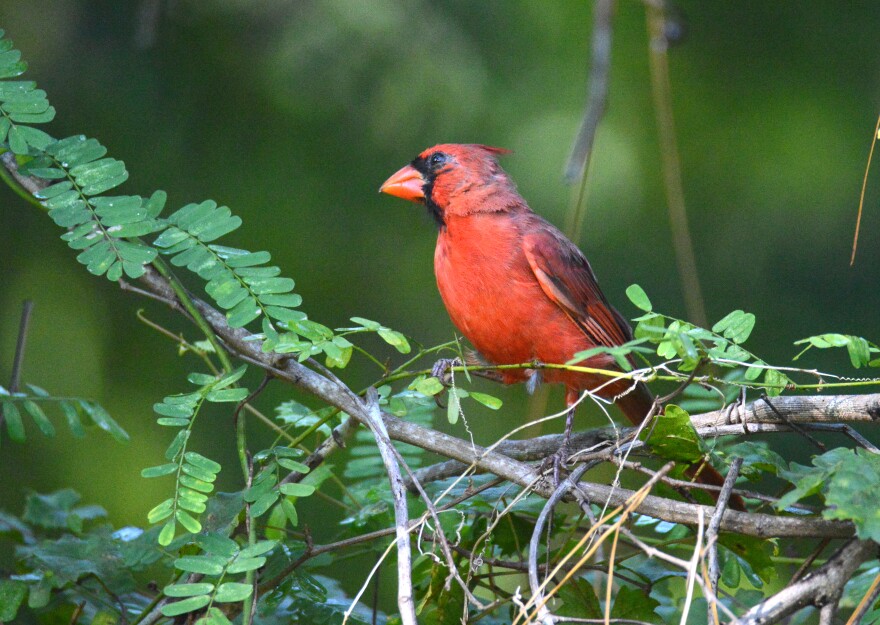 Whether you know it by its proper name – Northern Cardinal – or simply call it “Redbird”, this is a bird that seems everyone’s favorite. Its image adorns Christmas cards and calendars every year. This is also a backyard favorite, not only because of the male’s brilliant red, but also because it’s with us year round and readily comes to bird feeders that are kept stocked with sunflower seeds.